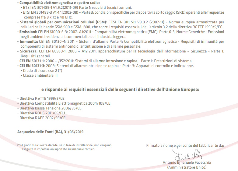 Per impianto di Allarme Antifurto si intende un sistema elettronico realizzato con apparecchiature CERTIFICATE come SISTEMA DI SICUREZZA.Esistono molti prodotti che si presentano come antifurti ma non hanno la certificazione ed il grado di sicurezza.